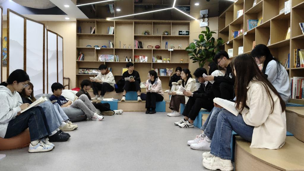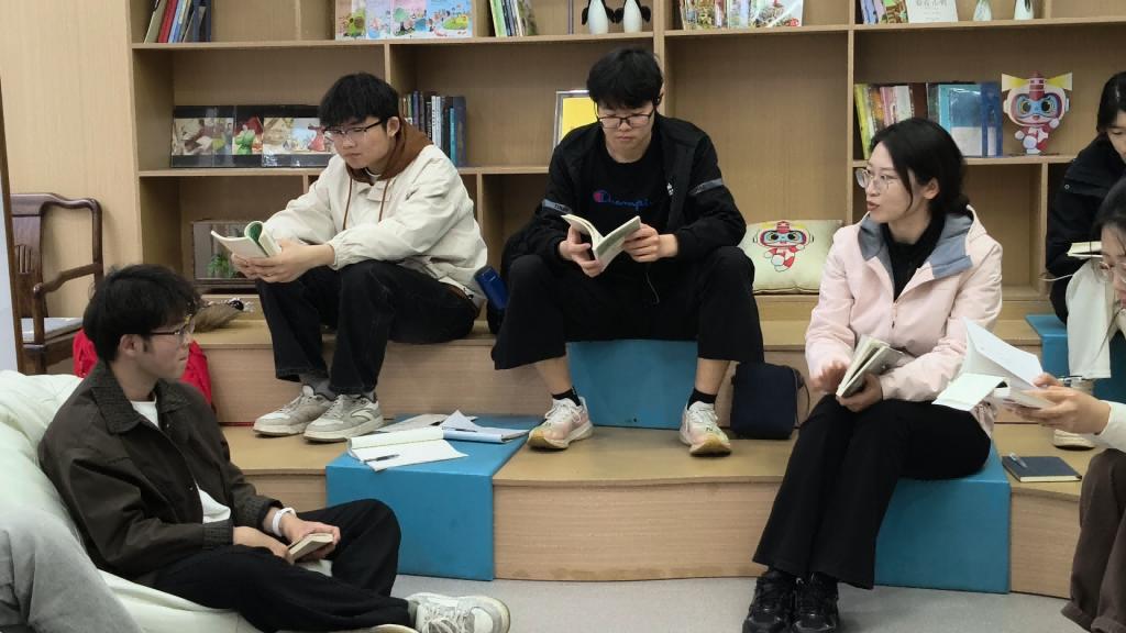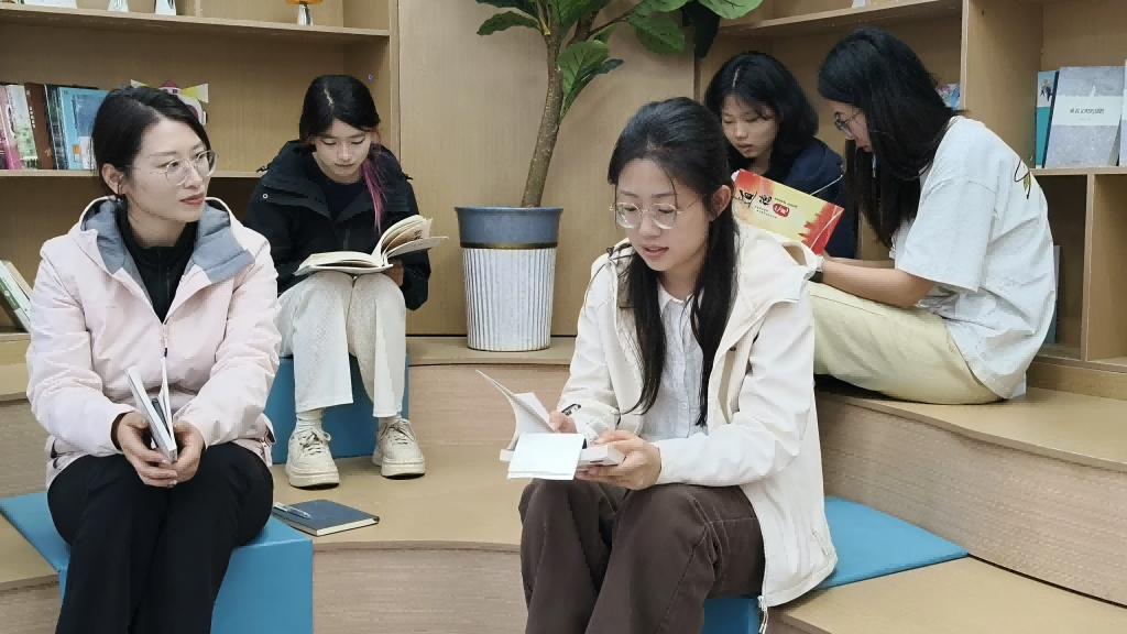 轻青社学生代表们依次分享了自己的心仪书籍与阅读感悟。有的同学分享了《健康中国行动读本》,结合专业学习,畅谈对健康管理行业的理解与热爱,表达了学好专业技能、助力健康中国建设的决心;有的同学分享了经典文学著作《朝花夕拾》,在文字中感受岁月沉淀的力量,抒发了对青春与成长的思考;还有的同学结合“初心驿·丝路红”空间的丝绸文化底蕴,分享了与周村丝绸相关的书籍,在阅读中感受百年商埠的文化魅力,体会“厚道、诚信、开放、包容”的鲁商精神。
