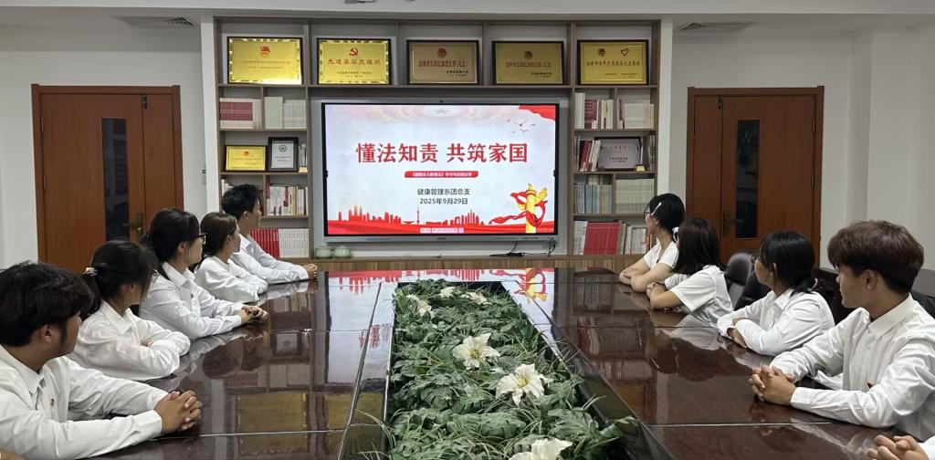 为进一步弘扬爱国主义精神,激发青年学生干部爱国热情与责任担当,增强学生干部法治观念,9月29日,健康管理系青年理论学习小组在国庆节来临之际开展以“懂法知责 共筑家园”为主题的爱国主义教育专题学习,引导青年学子在系统学习与实践感悟中筑牢法治思想根基。