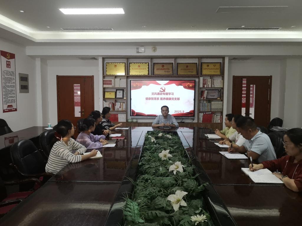 2025年9月26日,为深入贯彻全面从严治党战略部署,筑牢党员干部拒腐防变思想防线,健康管理系医养健康教研室党支部开展了“强党性、守底线、扬清风”党风廉政专题教育会。会议由孙海南书记主持,支部全体党员参加。