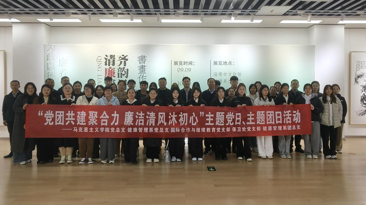 为深入贯彻立德树人根本任务,创新党建活动形式,厚植廉洁文化根基,传承中华优秀传统文化,10月23日下午,健康管理系党总支联合马克思主义学院党总支、国际合作与继续教育党支部和保卫处党支部带领学生代表,走出教室小课堂,走进社会大课堂,来到淄博市文化馆,开展了一场别开生面的廉洁文化展与非遗文化展参观学习活动。这场融合党建教育、廉洁警示与文化熏陶的“行走的思政课”,让师生在“有淄有味”的沉浸式体验中锤炼党性、涵养品格、感受匠心。