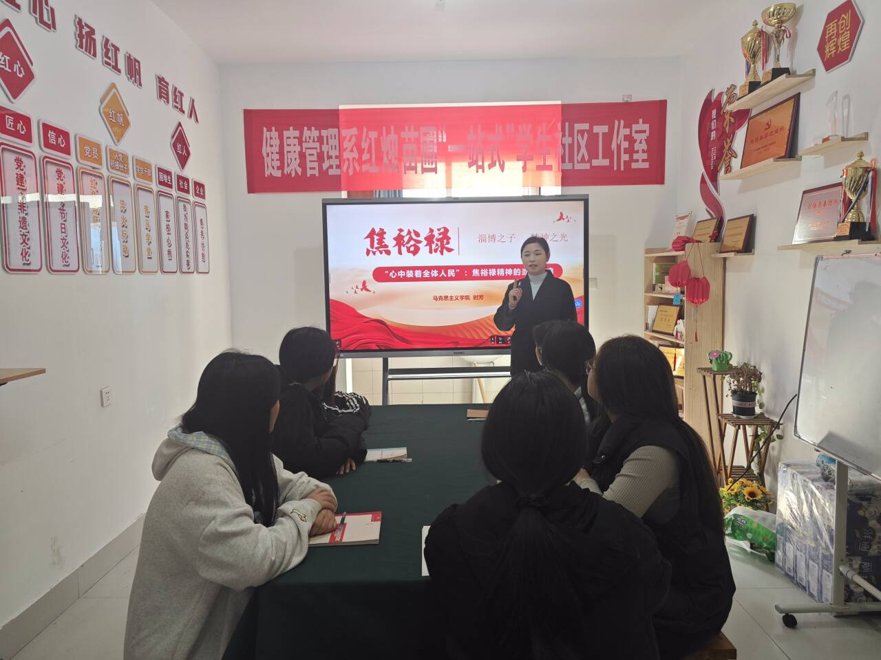 为深入落实立德树人根本任务,打造培育时代新人的新场域,贯彻“以学生为中心”的教育教学理念,将优质思政资源下沉到学生社区,11月14日,健康管理系在红烛苗圃“一站式”学生社区开展“同心圆”思政微课,马克思主义学院教师、健康管理系兼职辅导员时芳老师以《“心中装着全体人民”:焦裕禄精神的当代回响》为主题,巧妙利用焦裕禄同志作为“淄博老乡”的地缘亲近性,为同学们带来了一堂深刻而动人的思政课。