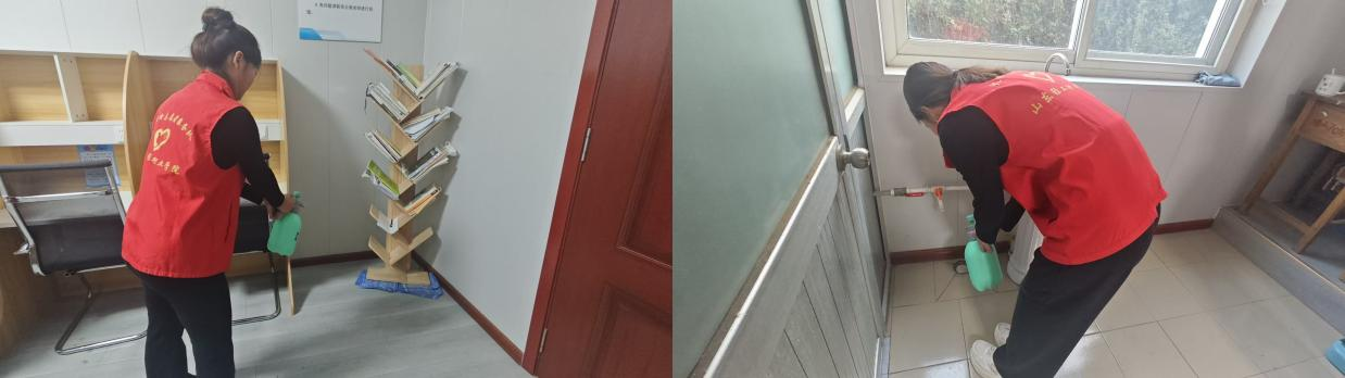 活动前期,我们对志愿者进行了专业培训,详细讲解了消杀药品的配比方法、喷雾器的正确使用流程以及不同区域的消杀重点,强调了个人防护注意事项,确保消杀工作科学规范、安全高效。活动中,志愿者们分携带专业消杀设备,按照“全覆盖、无死角、无遗漏”的原则,对教学楼的教室、走廊、楼梯间、卫生间,以及学生宿舍的寝室、楼道、公共洗漱区等重点区域进行全面消杀。大家分工明确、配合默契,仔细喷洒每一个角落,不放过门把手、桌椅缝隙、垃圾桶周边等容易滋生细菌的细节部位,用责任与担当为同学们的健康保驾护航。