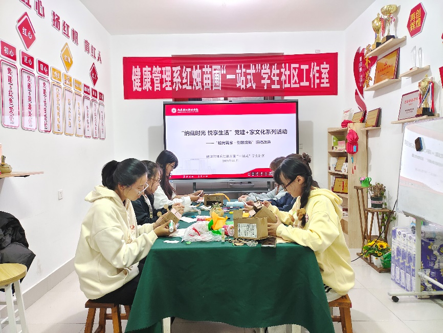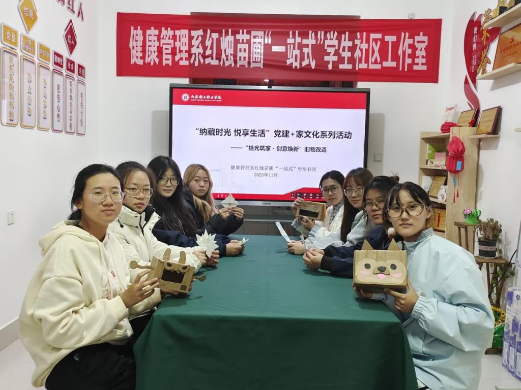 为深化“党建+家文化”育人实践,厚植学生环保理念与家园情怀,11月20日,健康管理系红烛苗圃“一站式”学生社区开展“党建+家文化”系列活动—“拾光筑家,创意焕新”旧物改造,同学们亲手改造闲置旧物,用创意美化共同的学习生活空间。