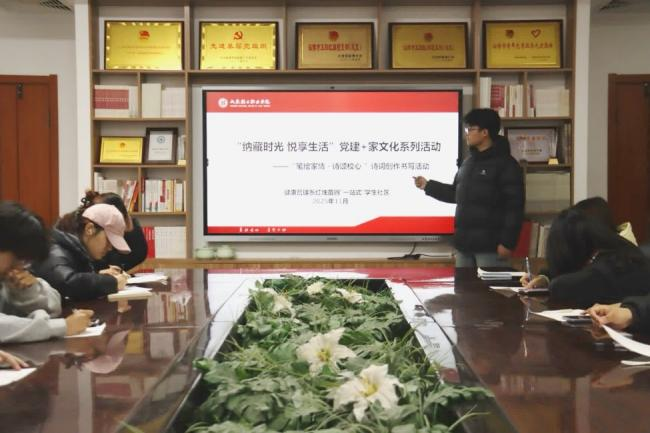 为凝聚爱校荣校情感,营造和谐温馨的校园氛围,11月27日,健康管理系红烛苗圃“一站式”学生社区开展“笔绘家情,诗颂校心”诗词创作活动,以笔墨传情、以诗词言志,让宿舍“小家”温情与校园“大家”情怀深度交融。