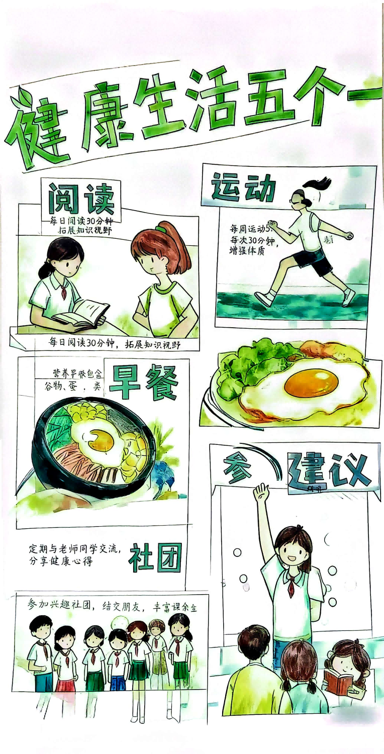 这些作品从“纸面”延伸到“日常”,是“健康+文明” 育人模式的生动实践,让健康习惯与文明素养融入学生日常,以“小作品”带动“大氛围”,助力学生在实践中养成终身受益的生活方式。(通讯员:侯雅洁)