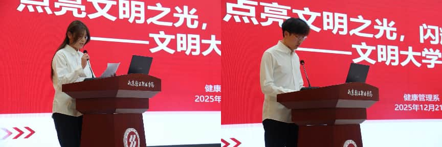 为进一步加强校园精神文明建设,引导学生树立正确价值观念,培育优良道德风尚,12月21日,健康管理系在图文信息大楼举办“点亮文明之光,闪耀青春底色”文明大学生宣讲活动。