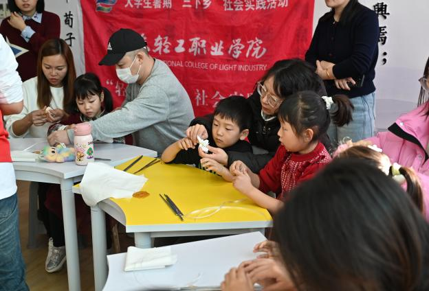 1月13日,齐缬社团举办了“缬韵流光,染艺雅集”蓝染主题非遗文化体验活动。活动现场,社团成员走进社区,不仅为大家系统讲解了蓝染技艺的历史渊源与工艺原理,还手把手指导社区的小朋友及家长们实践扎染、夹染等传统技法。素白布料在靛蓝染料中变幻出深浅不一的纹样,参与者们亲手创作出充满个性的蓝染作品,在一线一染间深刻感受传统手工艺的温度与非遗文化的深厚底蕴。