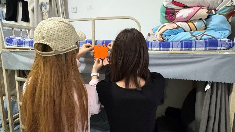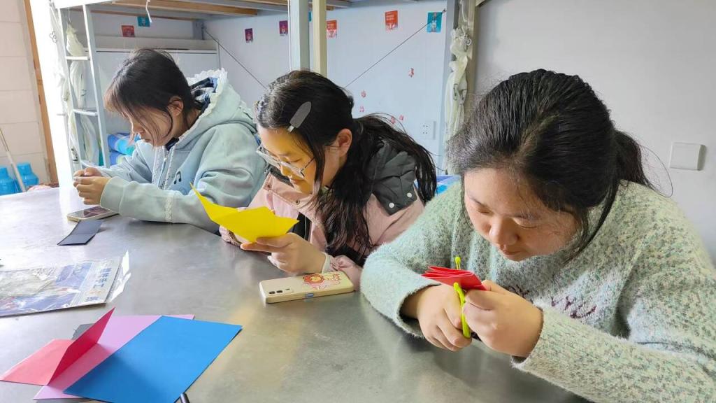 活动现场,同学们围坐在一起,拿起彩纸与剪刀,精心裁剪出自己喜欢的形状。每一张卡片都承载着舍友间细腻的情谊,大家提笔在卡片上书写“晚安悄悄话”:“早点休息,别熬夜啦”“熄灯一刻,好梦正长”……字里行间满是对彼此作息的关心与温馨的叮咛,写完后将卡片贴在床边。随后,各宿舍成员共同签署自己制定的《就寝自律协议》,以集体承诺的方式约定按时熄灯、规律作息,将健康生活的理念从“口头提醒”化为“指尖约定”。
