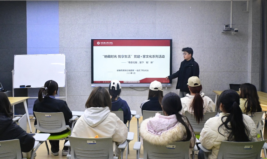 为进一步深化“党建+家文化”品牌建设,营造整洁、文明、和谐的社区环境,3月20日,健康管理系红烛苗圃“一站式”学生社区开展“党建+家文化”系列活动—“带走垃圾,留下‘轻’新”主题宣讲,旨在引导同学们养成良好卫生习惯,自觉维护公共环境。