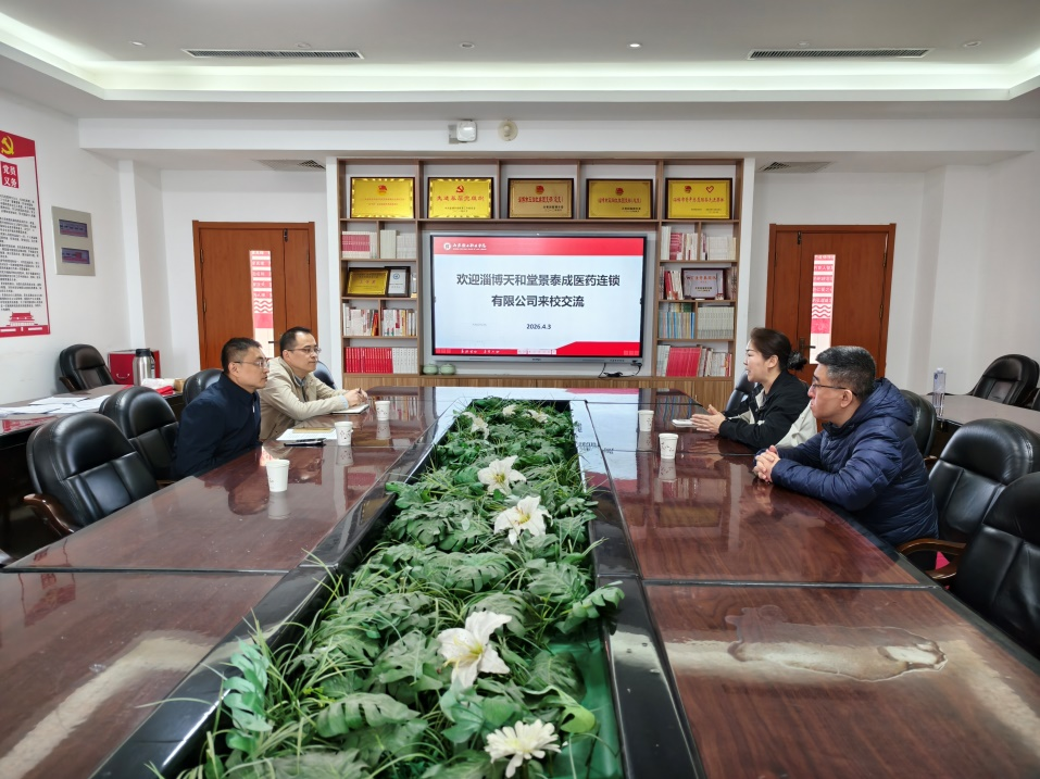 4月3日,淄博天和堂景泰成医药连锁有限公司人力资源部邹经理、于经理一行到访我系。健康管理系主任肖鹏业、医药化工教研室主任孙海南、淄博开放大学社会服务科科长孟庆海参加座谈。