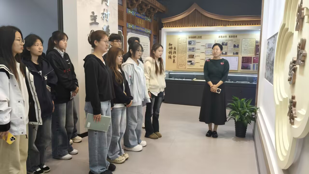 参观过程中,青年师生认真聆听讲解,驻足凝视展品,从新石器时代的丝绸纺轮、“瑞蚨祥”创始人孟洛川的相关史料,到《百年商埠丝路长》软陶泥塑还原的丝绸产业全流程,再到融合传统纹样与现代设计的文创丝巾,每一件展品、每一段故事都让大家深受触动。让青年师生真切体会到丝绸人代代相传的坚守与创新,深刻感悟到中华优秀传统文化的博大精深。同时,讲解员结合红色历史,讲述了周村丝绸人在时代浪潮中坚守匠心、奋勇争先的红色故事,让大家在领略千年丝韵的同时,接受了一次深刻的红色精神洗礼。